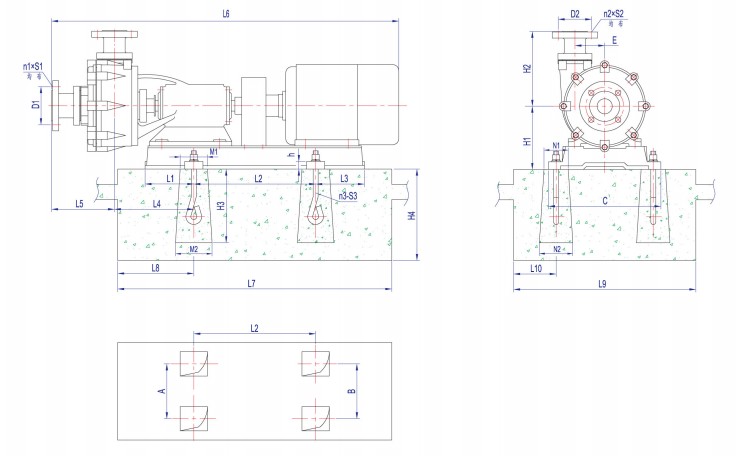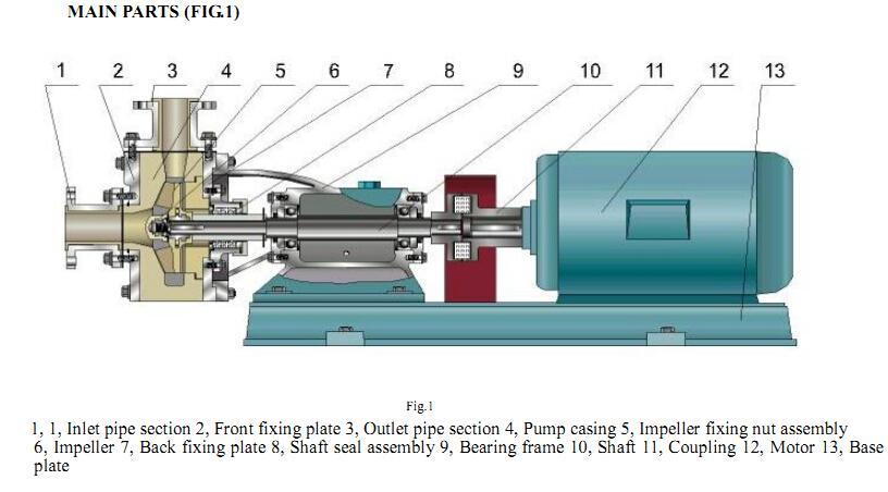 1. View from inlet of pump, outlet is on the left of pump center: 32FTU-15, 32FTU-20, 40FTU-50, 50FTU-30, 65FTU-54, 80FTU-30, 100FTU-40, 100FTU-48;